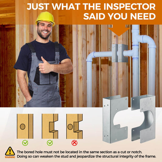 UPVONT Stud Shoes for 2x Studs, 16-Gauge Galvanized Stud Shoes, 6.25" Height, 1.5" Width, Fits Up to 2 3/8" OD Pipes – Thicker, Higher, IBC/IRC Code Compliant, Extra Durable (1.5" x 6.25" - 2 PCS)