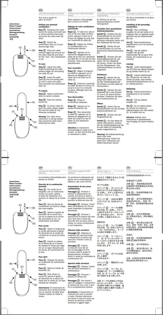 Bosvision Ultra-Secure 4-digit Combination Lock with 3 Feet Retractable Cable for Bike, Ski, Snowboard and Stroller
