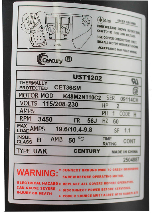 Century Electric UST1202 2-Horsepower Up-Rated Round Flange Replacement Motor (Formerly A.O. Smith)
