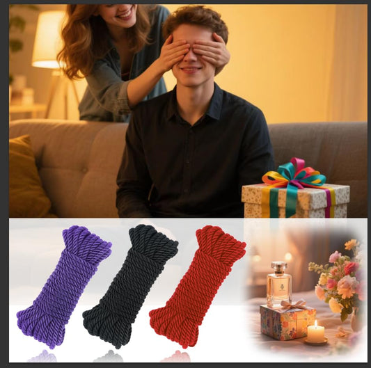 Silky Soft Rope - 8mm Thick Braided Cord, Skin-Friendly & Durable Twisted Braided Colored Nylon Ropes, Satin Smooth Finish for Multipurpose Use, Includes Storage Bag (Black & Red)
