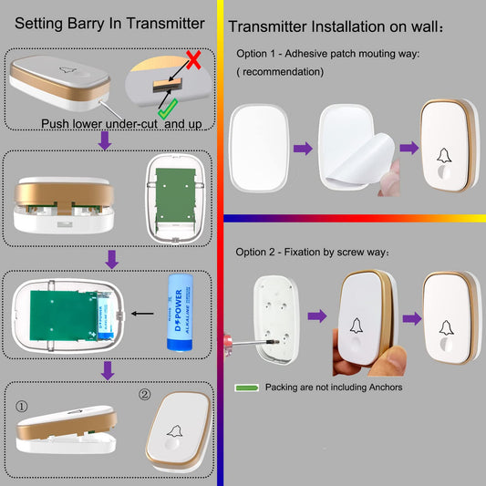 LUAMB Wireless Doorbell, 1,000ft Range Loud Enough with 5Volume Levels and Mute Mode Door Chimes LED Flashing