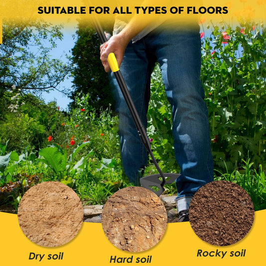 DwelSpire Hoe Garden Tools, Metal Heavy-Duty Triangular Garden Hoe for Easier Weeding and Digging, 41.3-55.5 Inch Adjustable Long Handle, Black