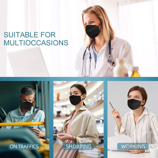 CHGD Kn95 Face Mask Black,5 Layer Cup Dust Safety Masks Men & Women Universal,Breathable, Comfortableable,Home and Outdoor Wearing (Black-60pcs)