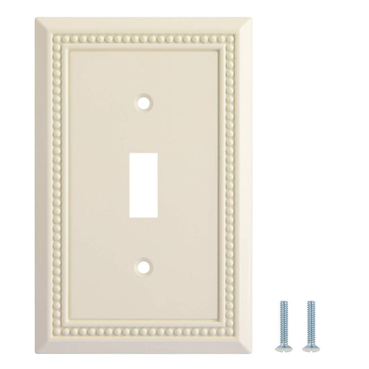 Henne Bery Sunken Pearls Heavy Duty Decorative Wall Plate Switch Plate Outlet Cover, Durable Solid Zinc Alloy (Single Toggle 2PK, Light Almond)