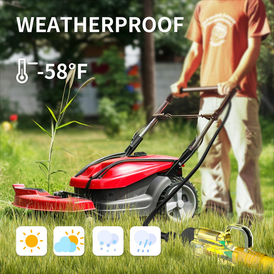 POWGRN 100 ft 12/3 Outdoor Extension Cord Waterproof Heavy Duty with Lighted Indicator End 12 Gauge 3 Prong, Flexible Cold-Resistant Long Power Cord Outside, 15Amp 1875W SJTW Yellow ETL Listed