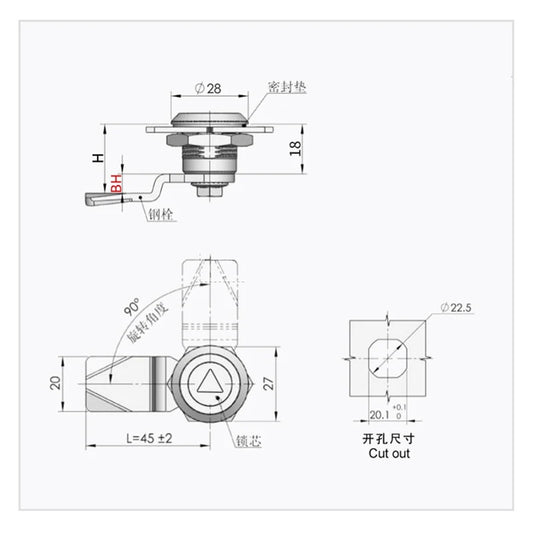 Distribution Cabinet Lock Panel 304 Stainless Steel Cam Tin 1Pcs(S Type Lock core,BH7)