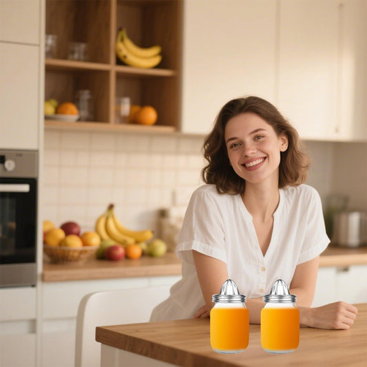 2pcs Mason Jar Juicer Lids for 3.38 Inch Wide Mouth Mason Jar, Stainless Steel Screw Top Lemon Juice Squeezer Lifestyle Manual Hand Juicer Accessories for Citrus Orange Lime
