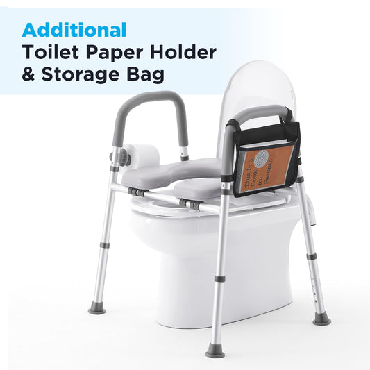 Toilet Seat Risers for Seniors, FSA HSA Eligible Adjustable Raised Toilet Seat with Handles, Toilet Risers, Cozy Padded Elevated Toilet Seat for Elderly, Pregnant, Handicap, Fits Any Toilet, 350lbs
