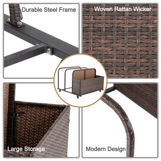 LUCKWIND Poolside Float Storage Organizer, Outdoor Rattan Pool Caddy with Wheels & Basket Holder for Patio, Pool, Garden Sturdy & Movable (Dark Brown)