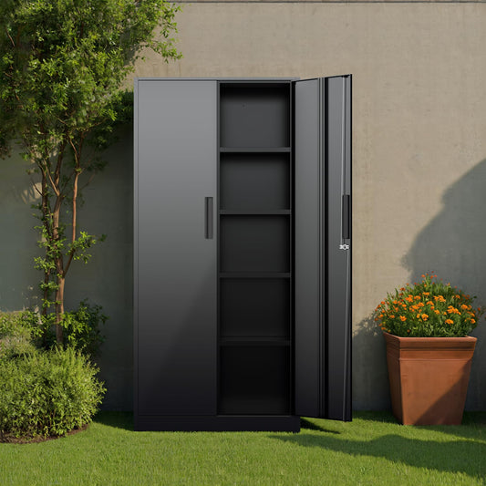 Oakcloud Metal Storage Cabinet Tool Organizer, 72" Lockable Garage Storage Tool Cabinets with 2 Doors and 4 Adjustable Shelves, Locking File Cabinet for Office, Home, School (72“ Standard-Black)