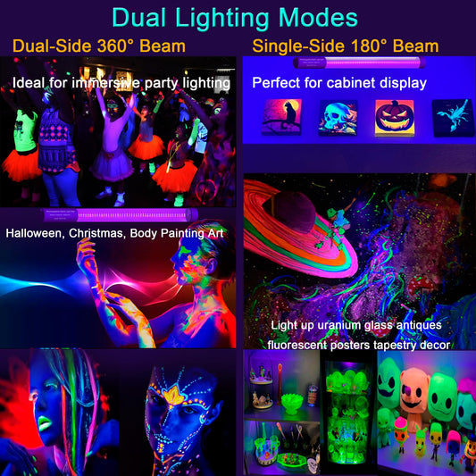 TITO Rechargeable Black Light Bar, UVA 395nm Waterproof Cordless Portable Battery Powered Blacklight Bar, Glow in Dark Halloween Party Fluorescent Posters Decor Display Night Fishing Aquarium, 2 Pack