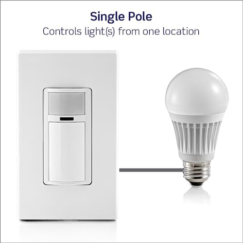 Leviton Motion Sensor Light Switch, Motion Activated, Auto-On/Auto-Off or Manual-On, 2A, No Neutral Wire Required, Single Pole, DOS02-LW, White