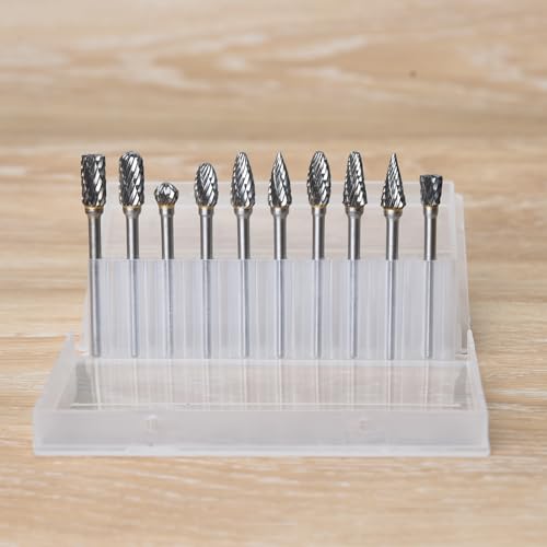Carbide Burr Set Compatible with Dremel Rotary Tool 10Pcs Die Grinder Bits Rotary File Rasp with 1/8" Shank Tool Accessories for Attachments Cutting Burrs Metal Grinding Engraving Porting Double Cut