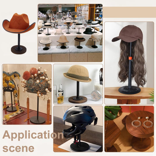 PH PandaHall Rustic Hat Display Stand, Vintage Wooden Hat Holder Rack Tabletop Helmet Stand Cowboy Hat Cap Storage Organizer for Closet Home Store, Wig, Hat, Helmet, Brown, 1 Pack