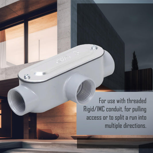 TayMac RLT100 Threaded T Type Conduit Body, Die Cast Aluminum, Stamped Steel Cover, 1-Inch,Gray