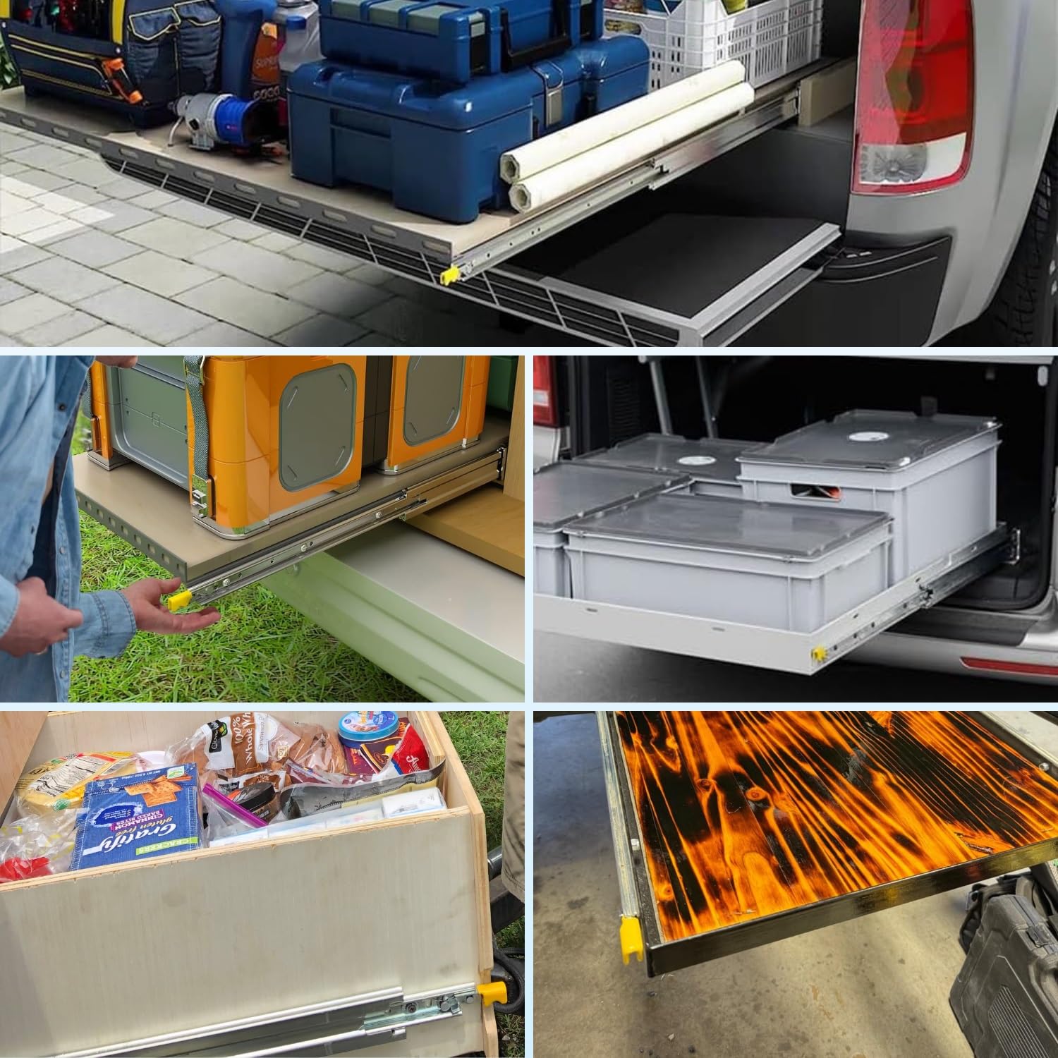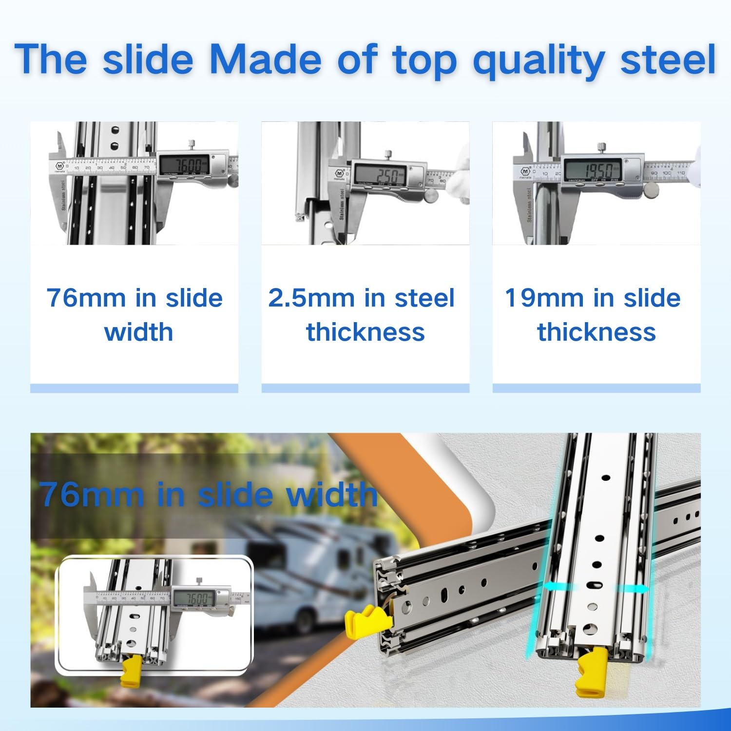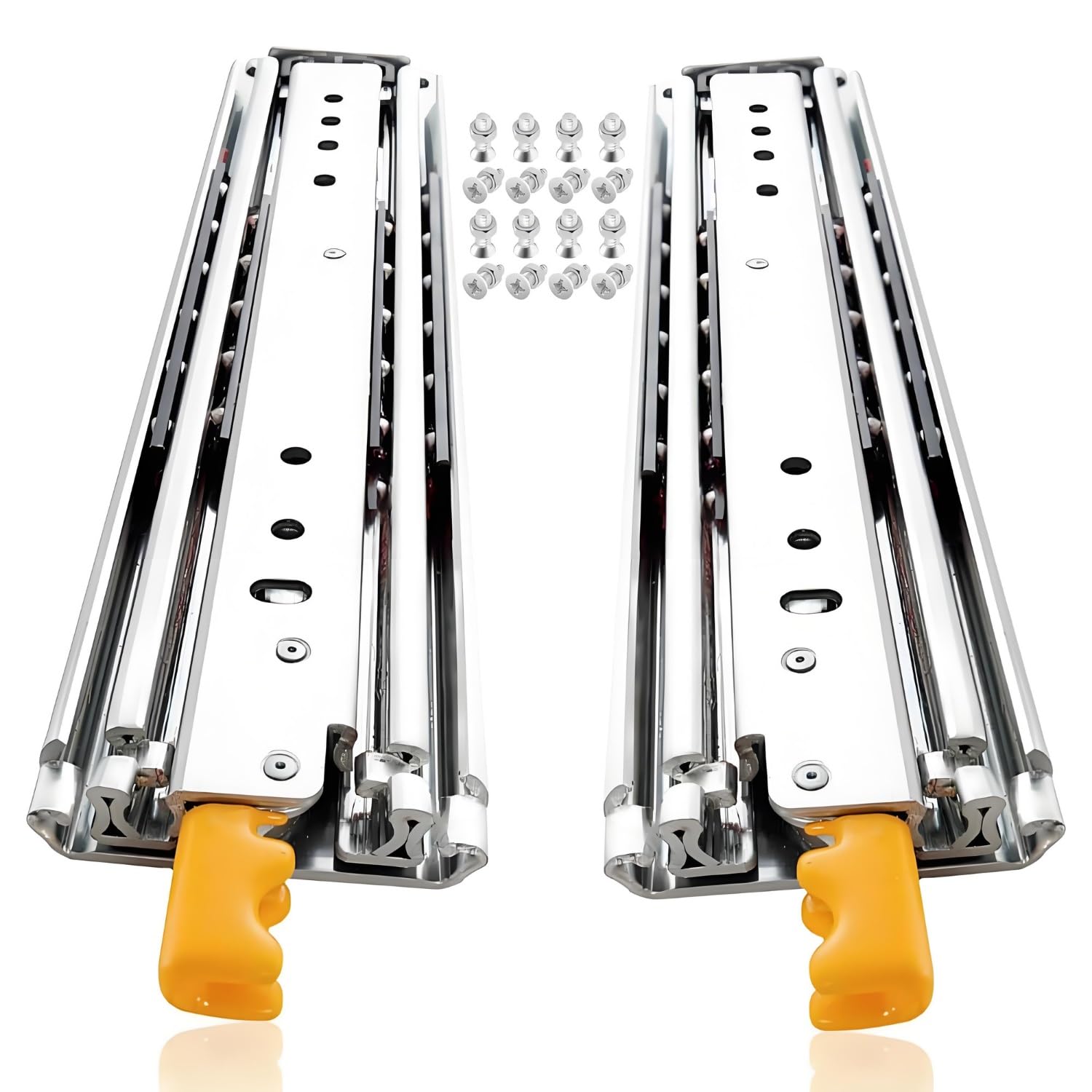 - Auto-Lock Mechanism: Yellow handle (1.18"/30mm) locks slides securely when fully closed/extended, Press both handles simultaneously to unlock