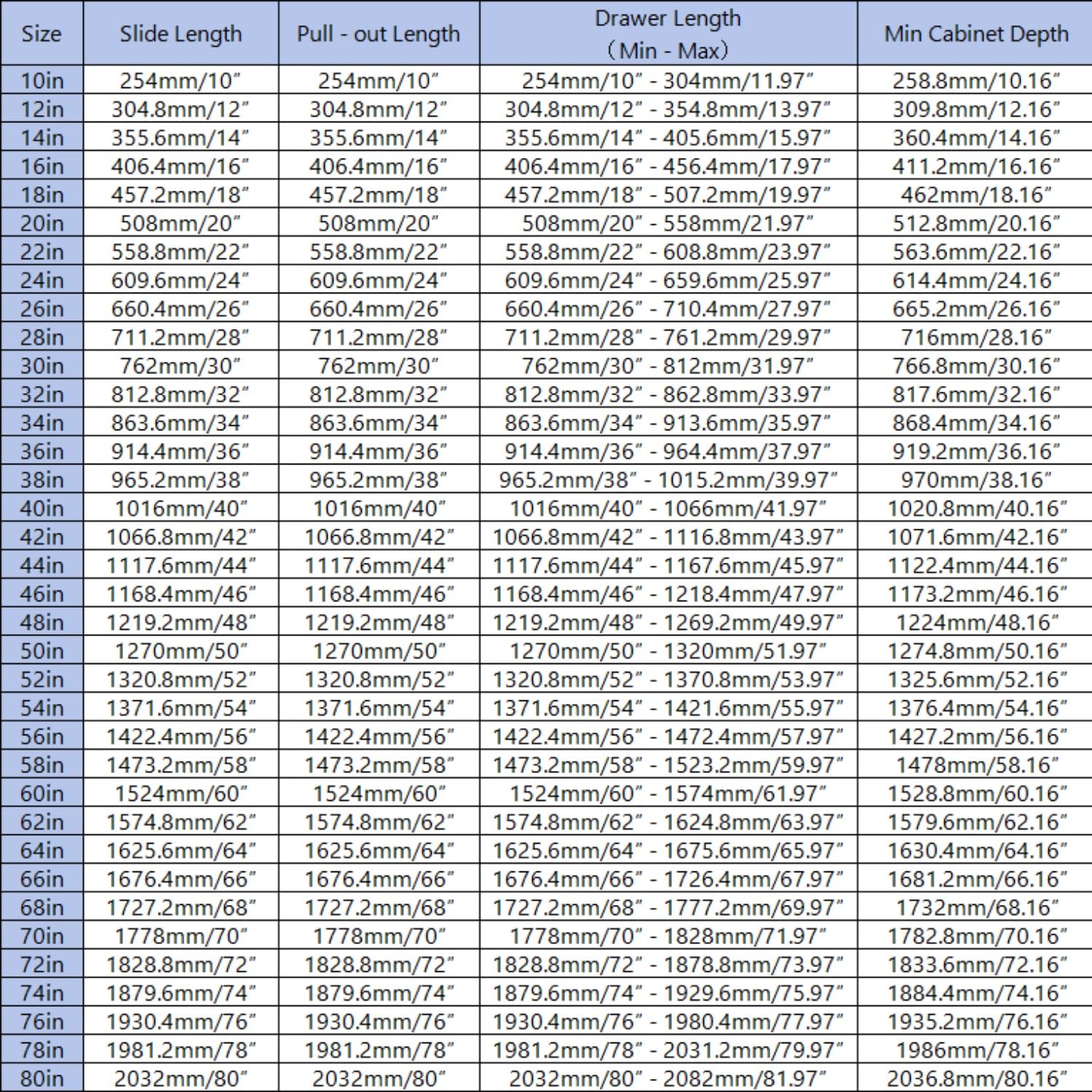 - Installation Note: Compatible with drawers having an internal depth of 10"-80". Requires 0.75" clearance on each side (total 1.5" gap: cabinet width - drawer width), Mounting screws included—use M6 screws per your setup