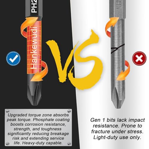 - Industrial Anti-Fracture Phillips impact bits: Each bit undergoes proprietary secondary cryogenic hardening to substantially enhance bulk toughness. Upgraded torsion zones absorb peak torque, radically reducing fracture risk.