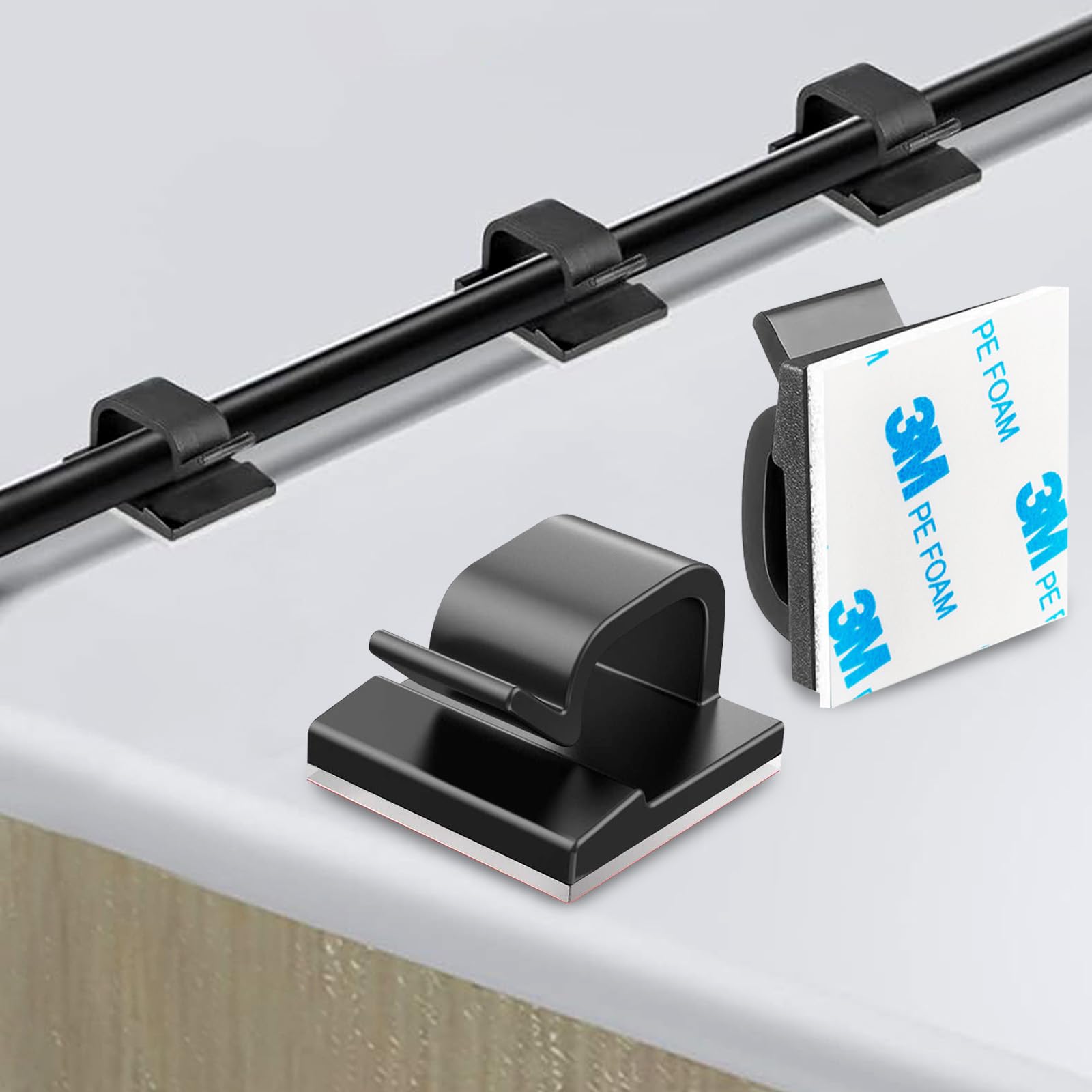 100PCS Adhesive Cable Clips Wire Holder Organizer Cord Management Outdoor Cord Clips for Wall(Black)