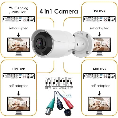- The 180-degree security camera supports 4 video output modes: 2MP 1080P HD TVI/AHD/CVI/960H CVBS (Analog).