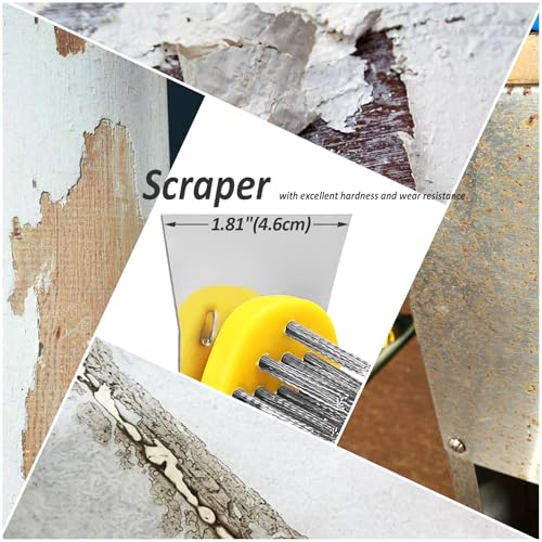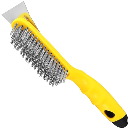 10.95" Wire Scratch Brush with Metal Scraper, Long Plastic Handle and 79 Bundles of Stainless Steel Bristles, Heavy Duty for Dust Paint Scrubbing, Dirt Rust or Welding Slag Removal