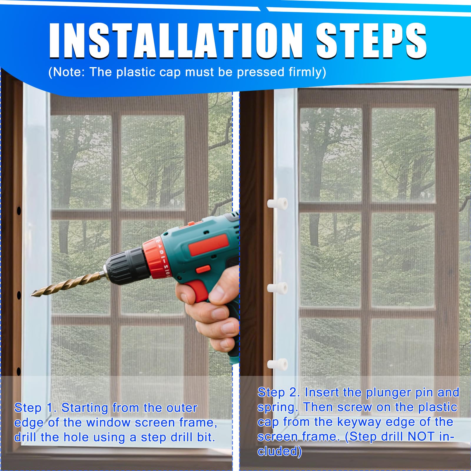 - Easy Installation: These window screen plunger latches are easy to install, simply slide the stainless steel spring onto the plunger pin and press firmly to snap the plastic cap in place.