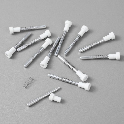 - Screen Plunger Lock Kit Contents: You will receive a set of window screen pins, including 12 white caps, 12 springs, and 12 aluminum pins. The long metal size is 1.5 × 0.15in/3.7 × 0.38cm, the spring size is 0.47 × 0.16in/1.2 × 0.4cm, and the white hardware size is 0.45 × 0.3in/1.15 × 0.76cm. These professional-grade aluminum window screen spring plunger pins can be used to upgrade your screen clips. They are easy to install, fit most screens perfectly, and are more durable than plastic latches.