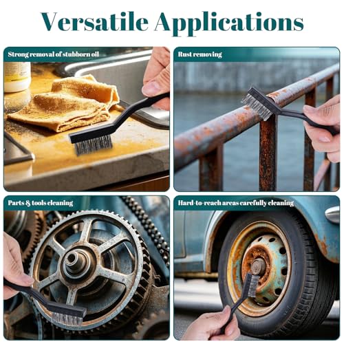 - ¡¼Wide range of applications¡½: The stainless steel wire brush set is suitable for cleaning and descaling rust, machinery, metal parts, paint stains, welding slag, and will not damage the surface, and can also be efficiently used to clean kitchens, door frames, windows, floor tiles and other crevices