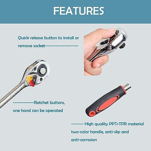 - RATCHET HANDLE: Ergonomic easy-catch ratcheting handle could be quickly released, make you comfortably reverse the switch and let the product exceptional durability
