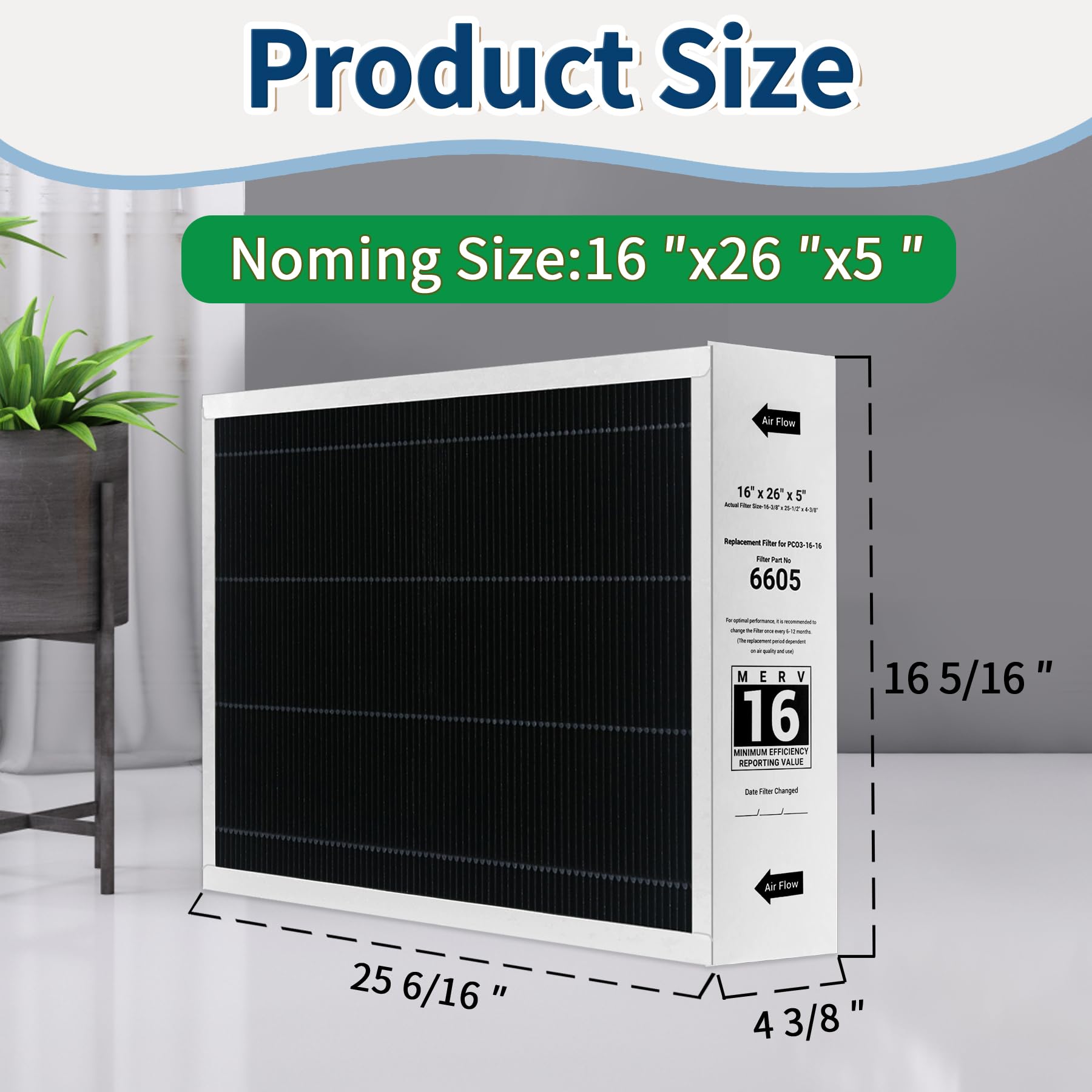 - 【Perfect Compatibility】The 16x26x5 air filter replacement Lennox 6605 16x26x5 MERV 16 filter and compatible with PureAir PCO3-16-16 air purifier
