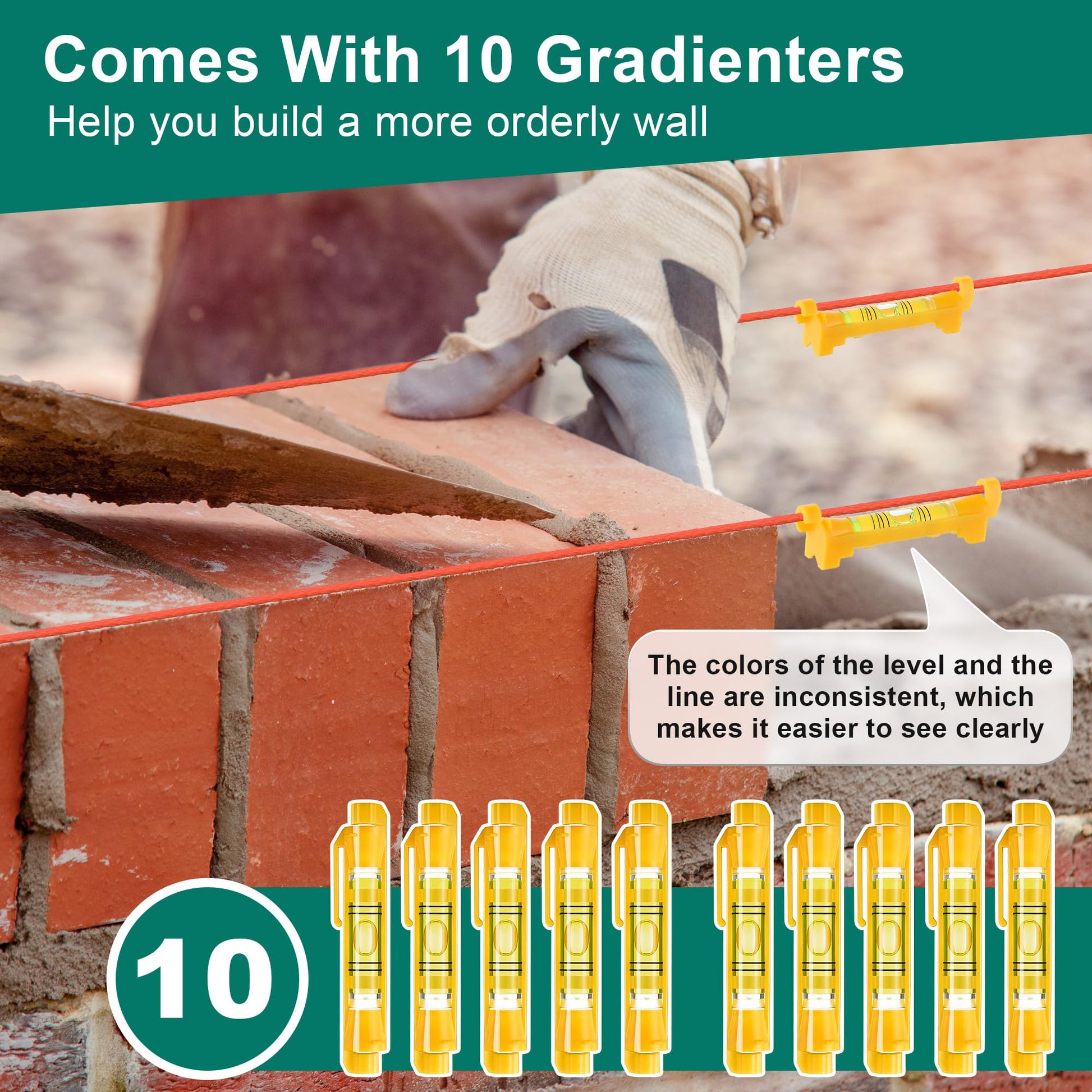 - [Precision Measurement]: Equipped with 10 built in levels to help professionals quickly and accurately ensure the levelness of every brick or block, providing precise support for construction projects. This string level line kit is an essential tool on construction sites