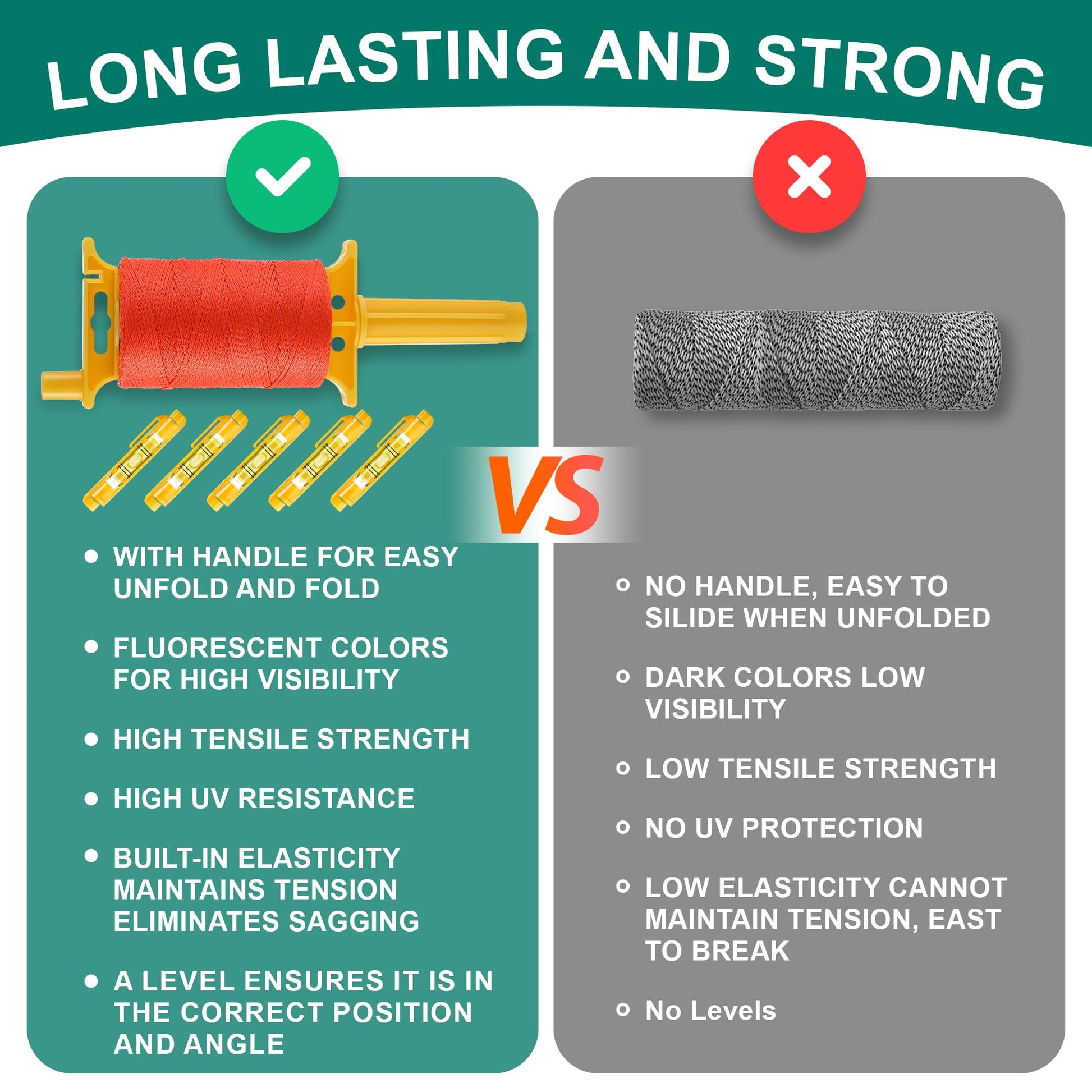 - [Easy to use]: Ideal for use with string line level or for any commercial twine heavy duty outdoor projects. Use as plumb line, or with surveyors plumb bob with string, or with a masonry line holder. Otherwise, our Mason line is designed with a handle, which makes it easy to hold and use, and you can also easily reload the spool at any time