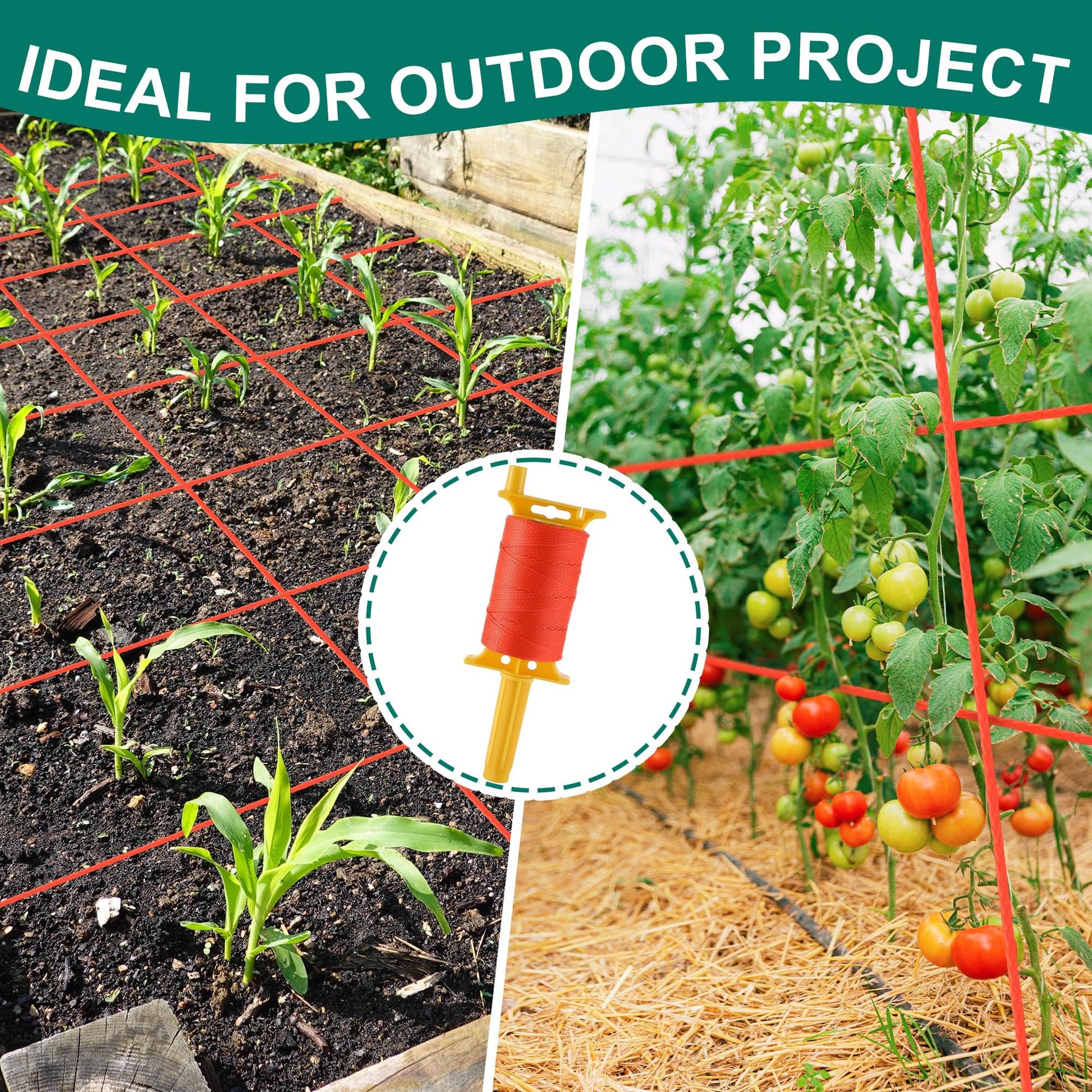 - [Bright colors]: Each braided masonry line roll is fluorescent and easy to see. Perfect outdoor string for use as landscape twine, property line markers, construction twine, or marker string. This orange string is perfect for use in the garden. Use it as tomato twine string to tie up tomato plants, or for wick watering African violets, or general landscaping twine