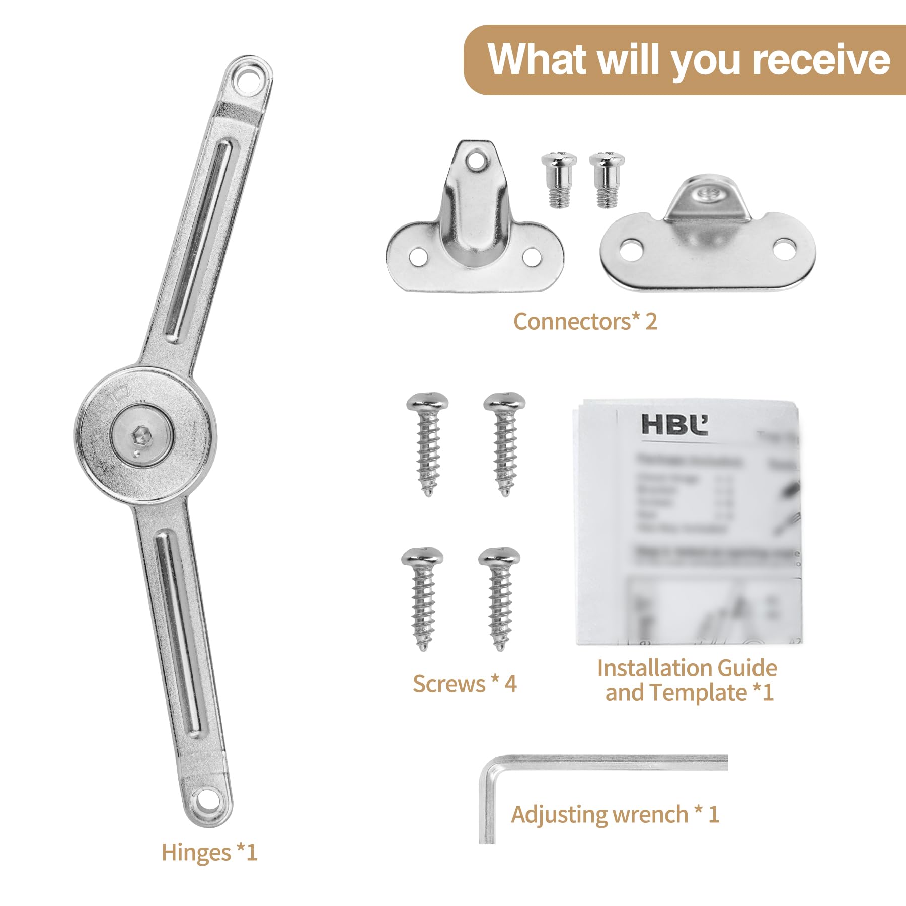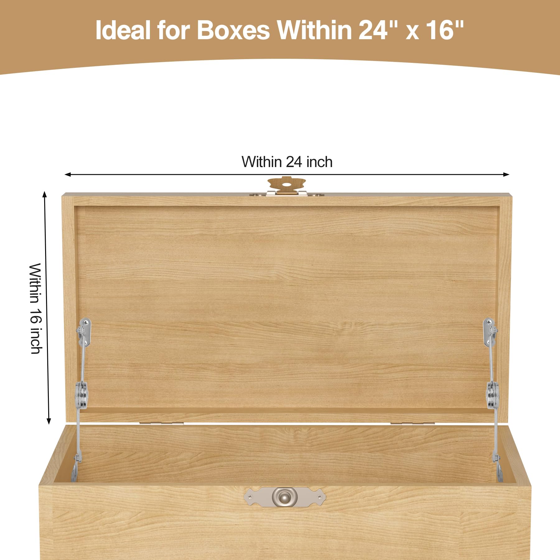 - [Adjustable Tension] The lid support hinges are ideal for boxes sized up to 24" x 16". Use an Allen wrench to easily adjust the soft-close tension for lids of various weights. After installation, simply turn the hinge tension clockwise or counterclockwise to achieve optimal performance.