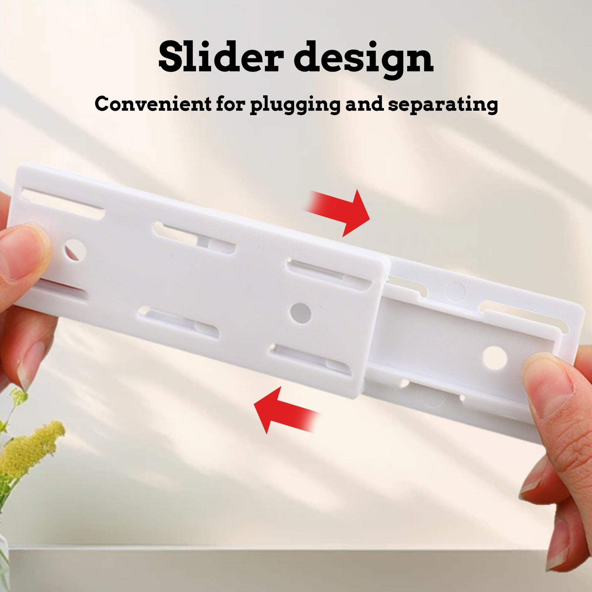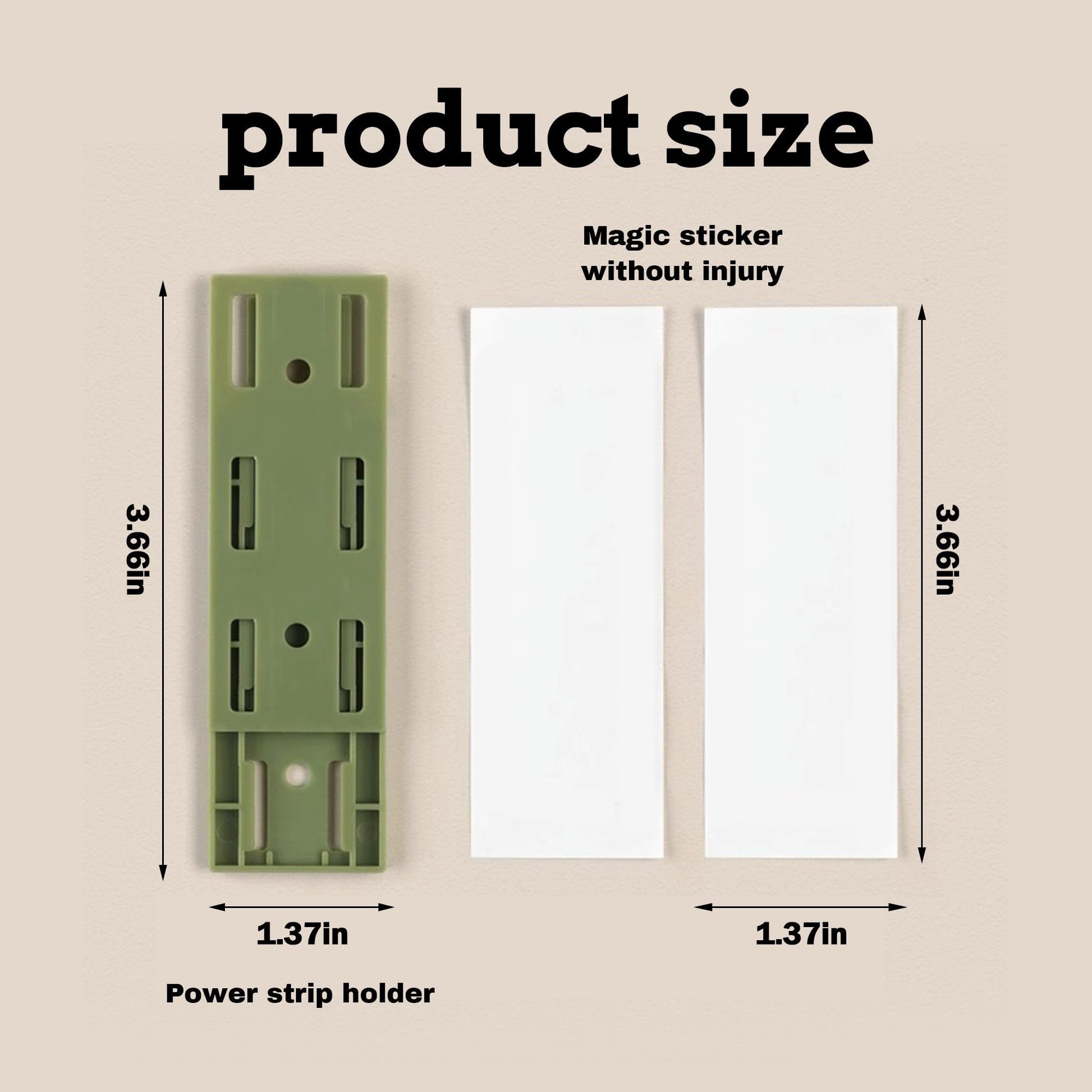 - No Punching Installation: The power strip holder is easy to install without punching and needn’t any tools. Simply tear off the double-sided tape from a set of socket holder backing, then stick one socket holder to the back of the power board and another stick to and the smooth wall, desk or where you need it, then install the card in the card slot to complete the installation