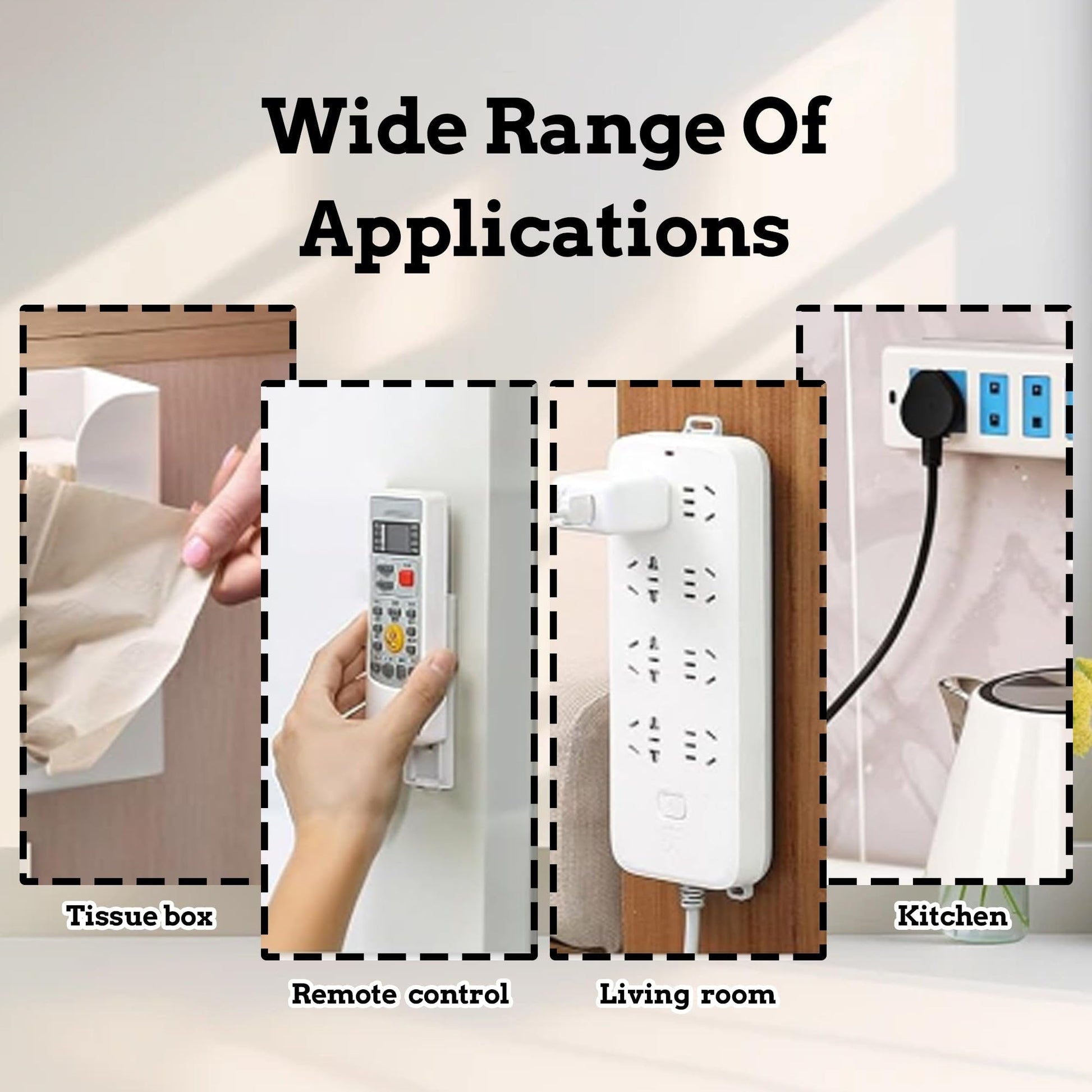 - Widely Used: The power strip holder have a wide range of application. In addition to holding power strips, It can also be used to hold surge protectors, cabinet lights, remote controls, photo frames, and more