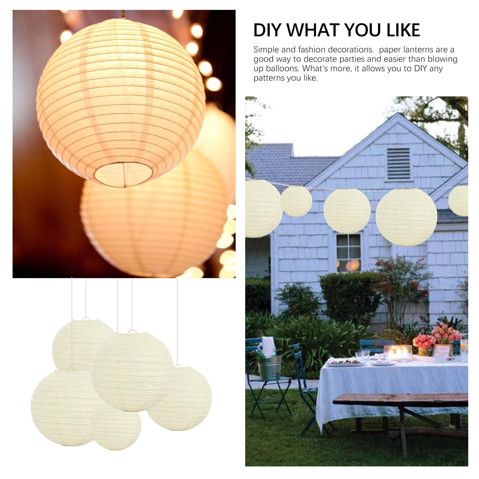 20Pcs Cream Paper Lanterns for Parties, 6” 8” 10” 12” Chinese Asian Hanging Round Paper Lanterns for Birthday Wedding Halloween Christmas Home Decor Party Decor