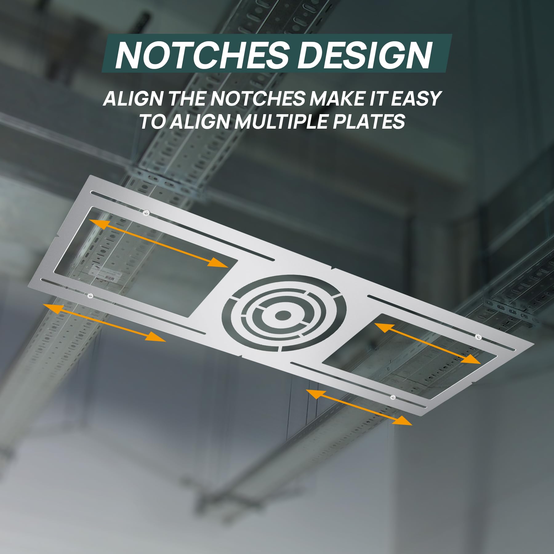 - Easy to install: This ceiling mounting bracket has installation holes and tracks, enabling our mounting plate to be fully compatible with the structural layout of different types of house lighting fixtures. The alignment notches on the mounting plate will help align multiple plates. You can fix the steel plates in the mounting slots with screws (not included).