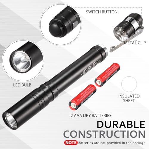 - Battery Powered: the pocket flashlight with clip is conveniently designed and can be applied with 2 AAA batteries (not included); Just make sure to insert the battery with the positive pole facing the pen bulb, press the tail button switch to enjoy a long-lasting lighting experience, the lighting time can last for 6 to 8 hours, and the wavelength can reach 395 to 400 cm; Please note that the UV flashlight must not shine directly into the naked eye