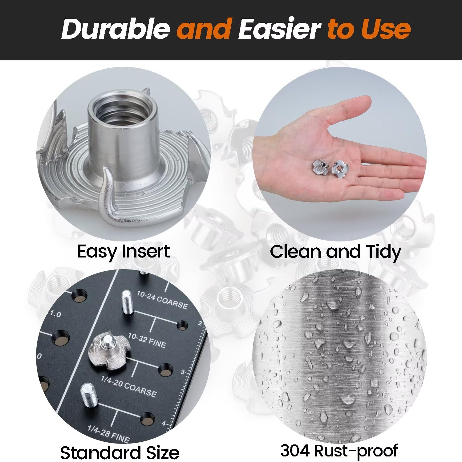 25 PCS M6 T-Nuts 304 Stainless Steel Four-Jaw Tee Nuts, Corrosion-Resistant Threaded Inserts for Wood, Cabinetry, Rock Climbing Holds, Home, Hotel & Outdoor Furniture
