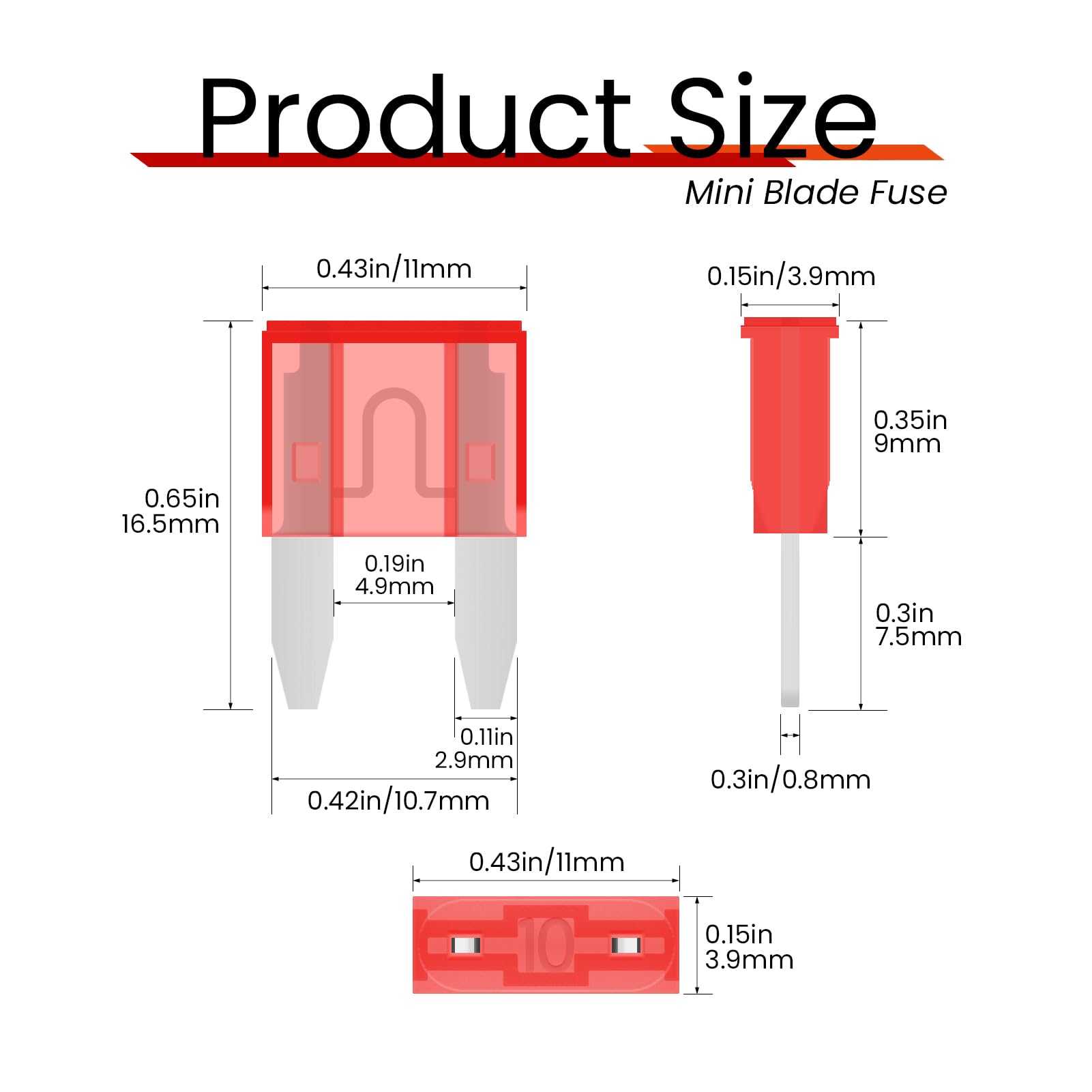 - Product Details - Size: Mini, Current rating: 10A, Voltage:32V(12V/24V), Pack of 25 pcs