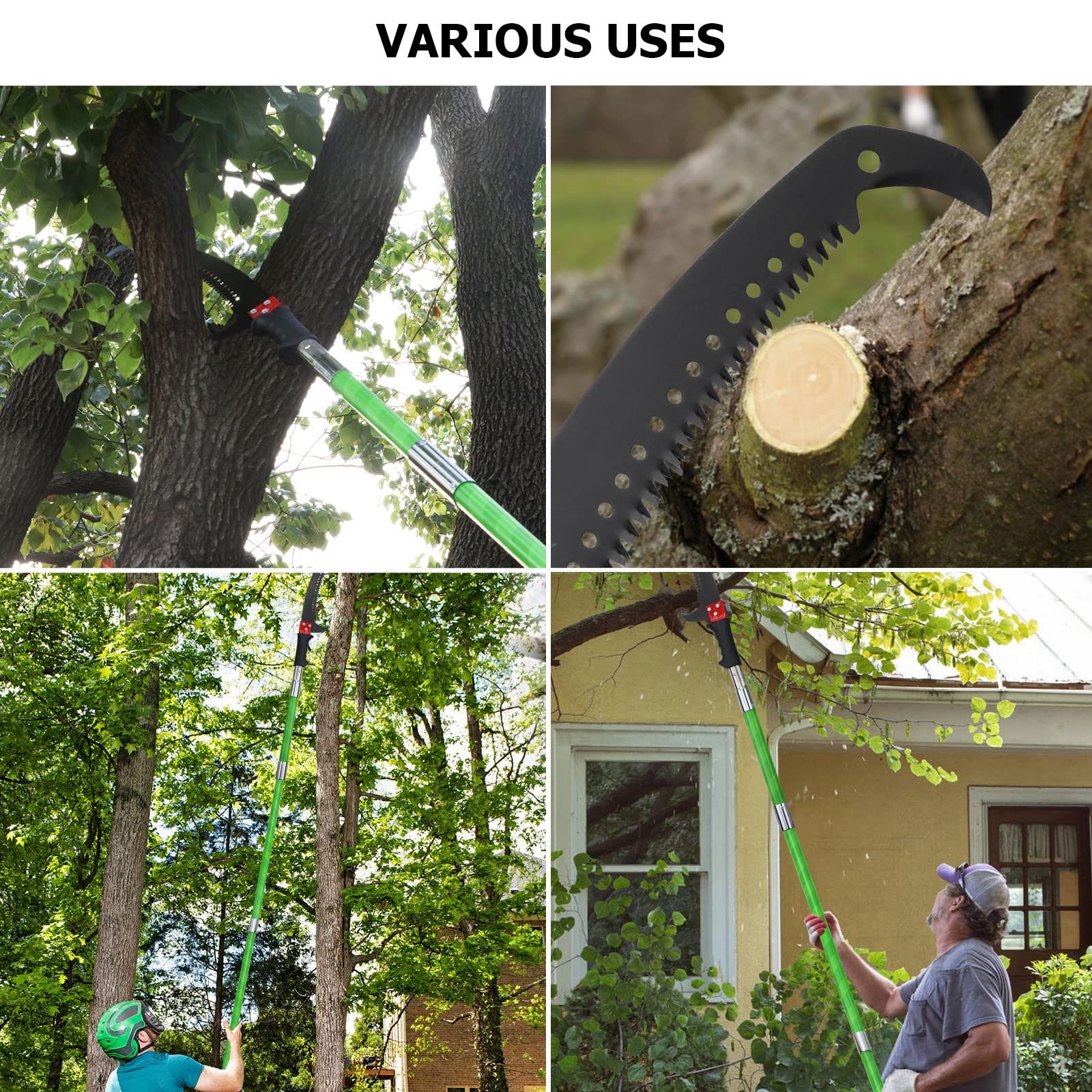 - 【Durable Material】:The pole pruner saw blade is made of alloy steel with high hardness, not easy to bend and break.The epoxy resin pole is lightweight and durable.corrosion resistance, and strong bearing capacity. which are hardened carbon steel,Great for pruning larger branches.