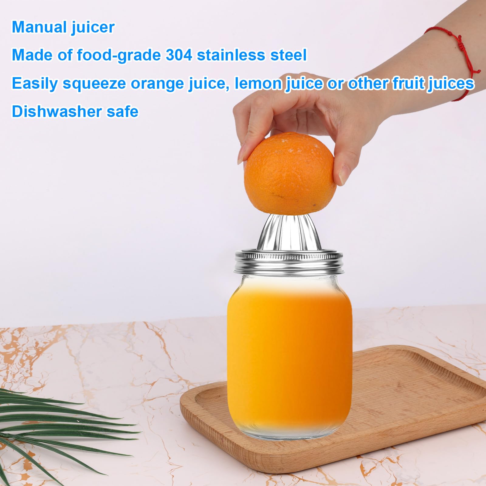 2pcs Mason Jar Juicer Lids for 3.38 Inch Wide Mouth Mason Jar, Stainless Steel Screw Top Lemon Juice Squeezer Lifestyle Manual Hand Juicer Accessories for Citrus Orange Lime