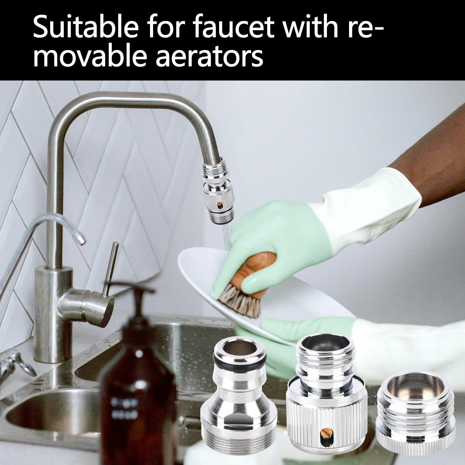 3 Pack Faucet Adapter Set, Quick Connect Sink Faucet to Garden Hose Aerator Adapter Dishwasher & Washing Machine Coupler Connector for Kitchen, Bathroom, Pet Bathing, Garden, and Shower Hose