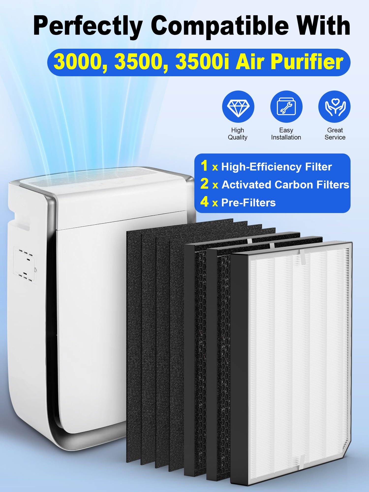 - ๐๐ซ๐๐ฆ๐ข๐ฎ๐ฆ ๐ ๐ข๐ฅ๐ญ๐ซ๐๐ญ๐ข๐จ๐ง: Enjoy exceptionally fresh air with our advanced 3-stage filtration system. This 3500 filter replacement is delivering high-efficiency filtration thatโs ideal for long-term useโespecially beneficial for households with pets