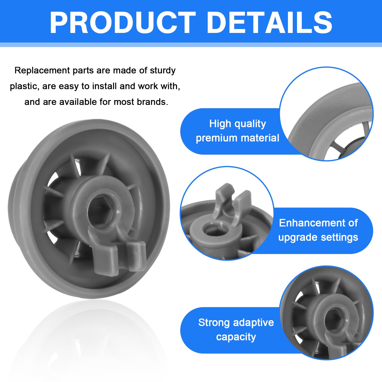 - Easy to Install:Comes with a locking clip for secure attachment—no tools required. Simply remove the old wheel, align the new one to the slot, and snap into place. Replace all 4 Bosch dishwasher wheels lower rack in just minutes to get your appliance running like new.