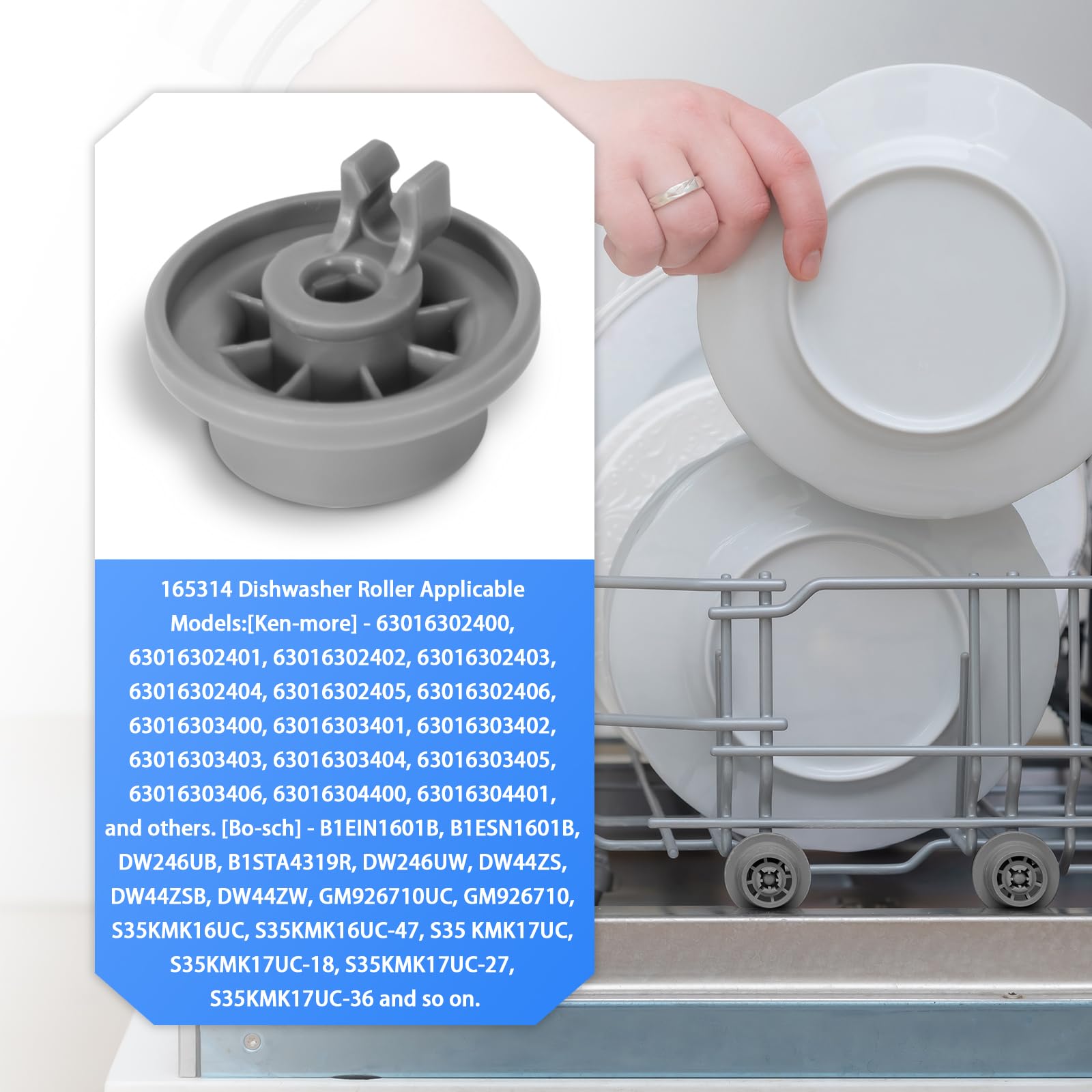 - Perfect Fit Replacement:This 165314 Dishwasher Lower Rack Wheel is a direct replacement for part numbers: 00165314, 00420198, 420198, 423232, AP2802428, PS3439123, EA3439123, AH3439123, EAP3439123, PS8697067. Compatible with major brands including Bosch, Kenmore, Gaggenau, and Thermador. Check your model to ensure compatibility—refer to models like 63016302400, DW246UB, SHE43M02UC, and more.