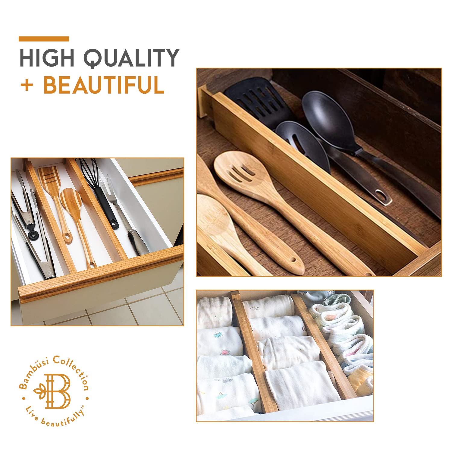 - STURDY BAMBOO: The bamboo drawer organizer looks gorgeous in your drawer; It’ll actually look like your drawer was custom made; The bamboo kitchen drawer dividers are sturdy and will hold up well with use