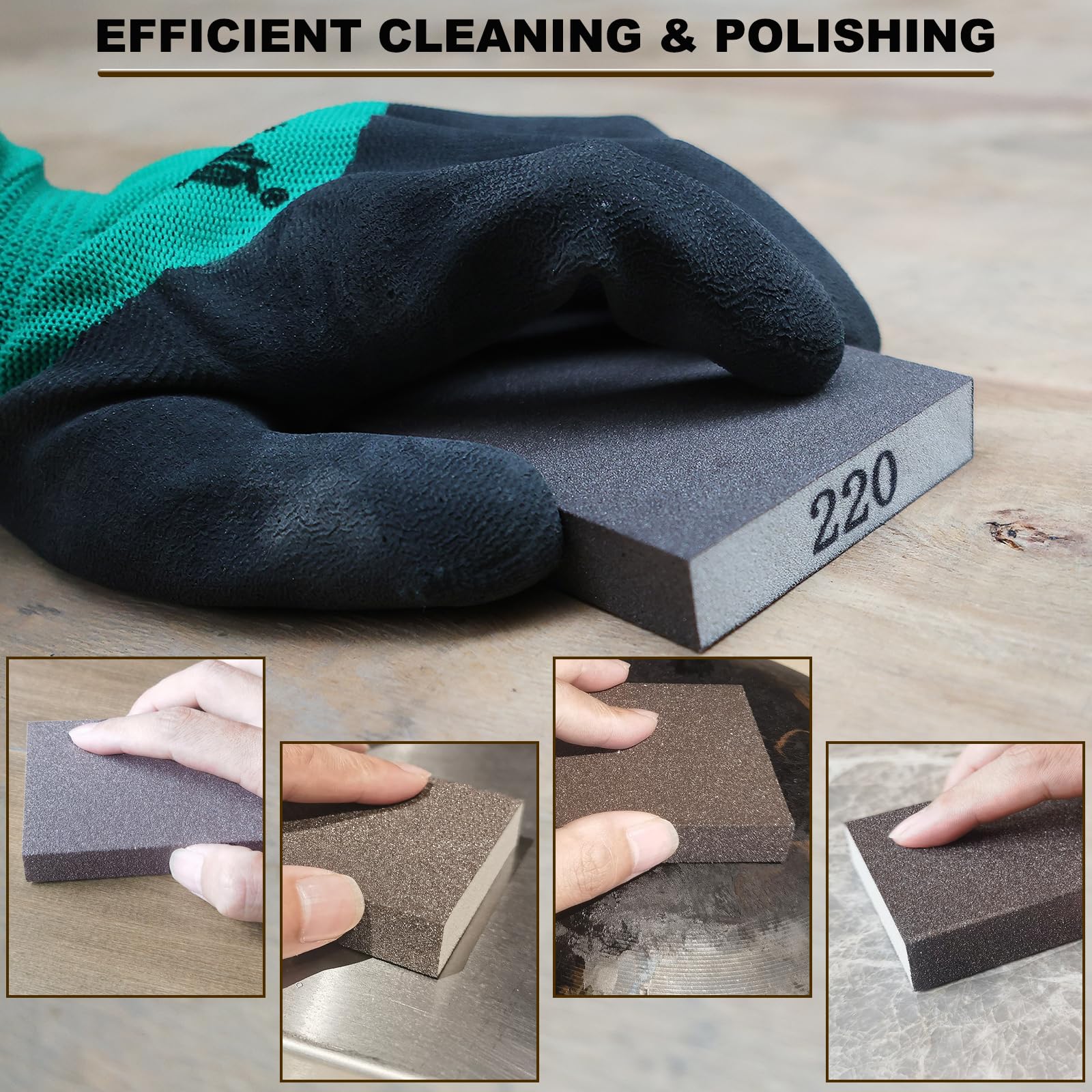 - High-Quality & Durable Material – Made from high-density sponge, these sanding blocks are flexible, tear-resistant, and long-lasting. The abrasive particles stay firmly bonded, preventing shedding during use.