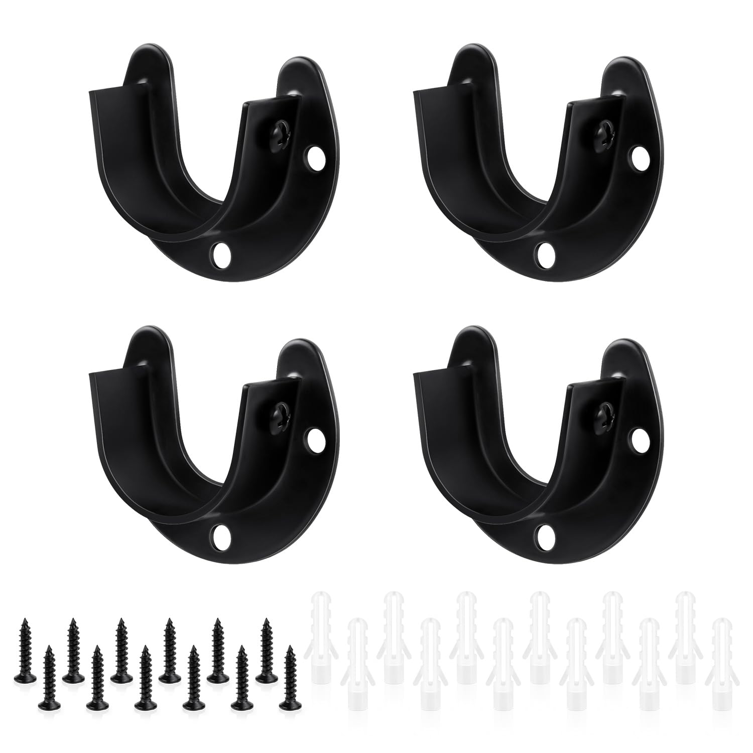 4 Packs Stainless Steel Wardrobe Bracket U-Shaped Rod Socket Flange 1-1/4" Diameter Heavy Duty ClosetBrackets End Supports for Closet Rod with Screws (Black)